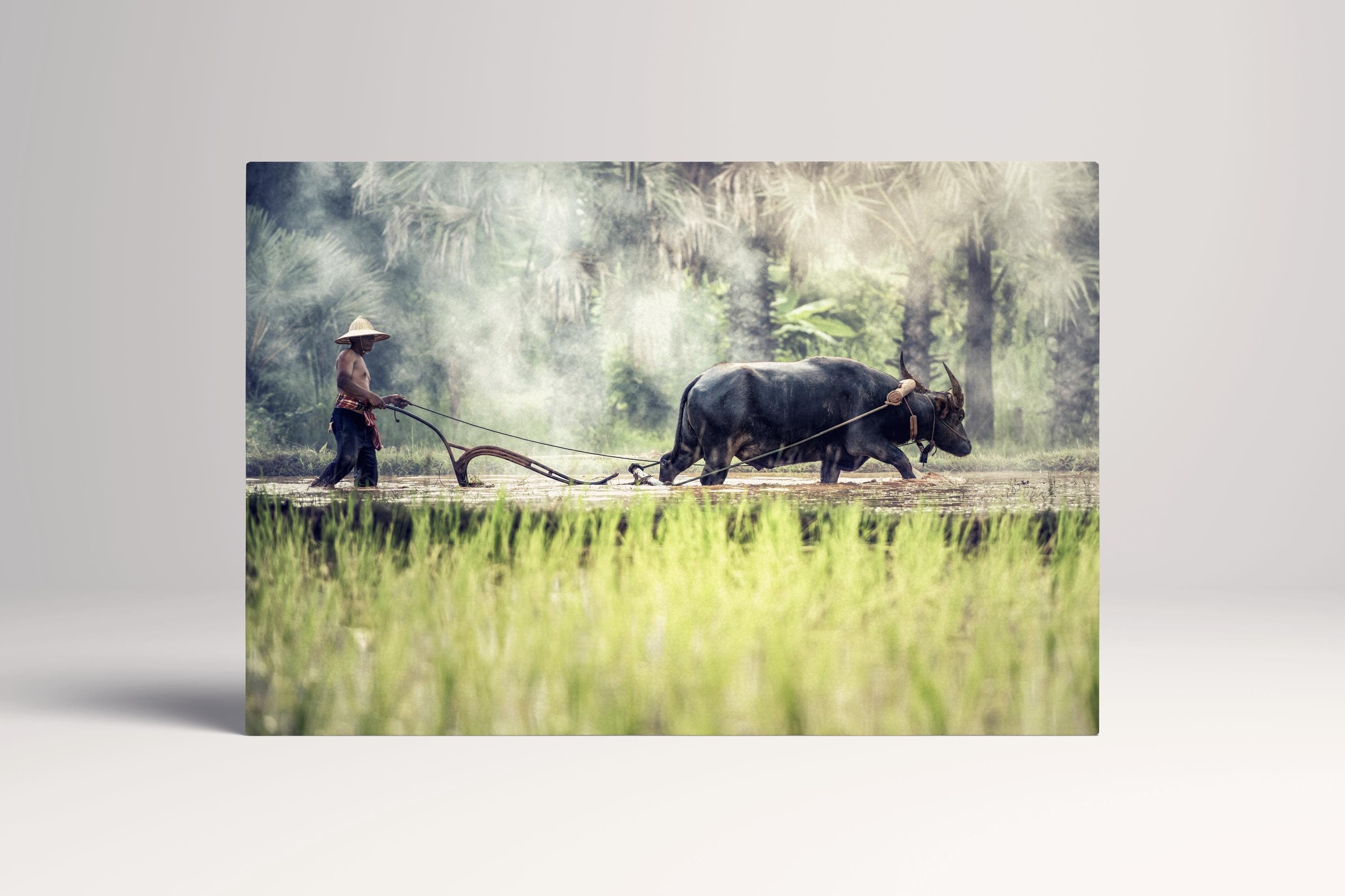 Water Buffalo Cambodia Farming PETA Approved Eco Leather Canvas Triptych or Single Art