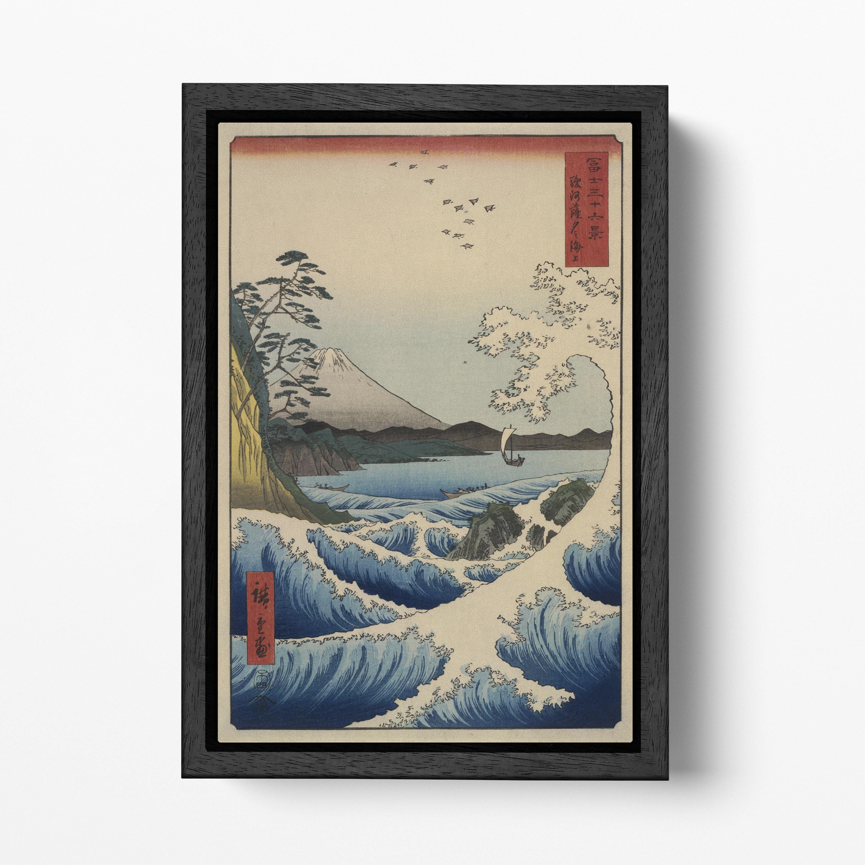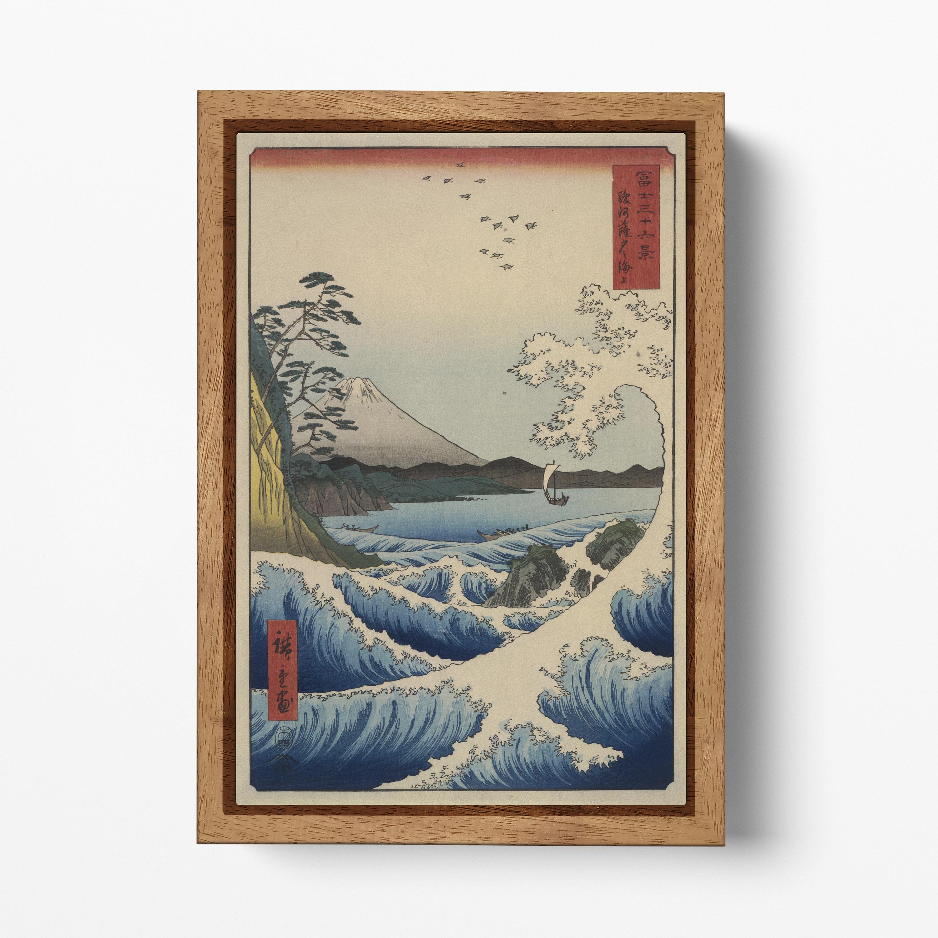 Own a masterpiece from Utagawa Hiroshige’s legendary series, Thirty-Six Views of Mount Fuji. "The Sea at Satta in Suruga Province" (Suruga Satta kaijō) is reimagined on PETA Approved Eco Leather, where the crashing waves and distant Fuji are elevated by a luxury, textured finish. This sustainable reproduction honors the 1858 original with a tactile depth and durability that traditional paper cannot match.