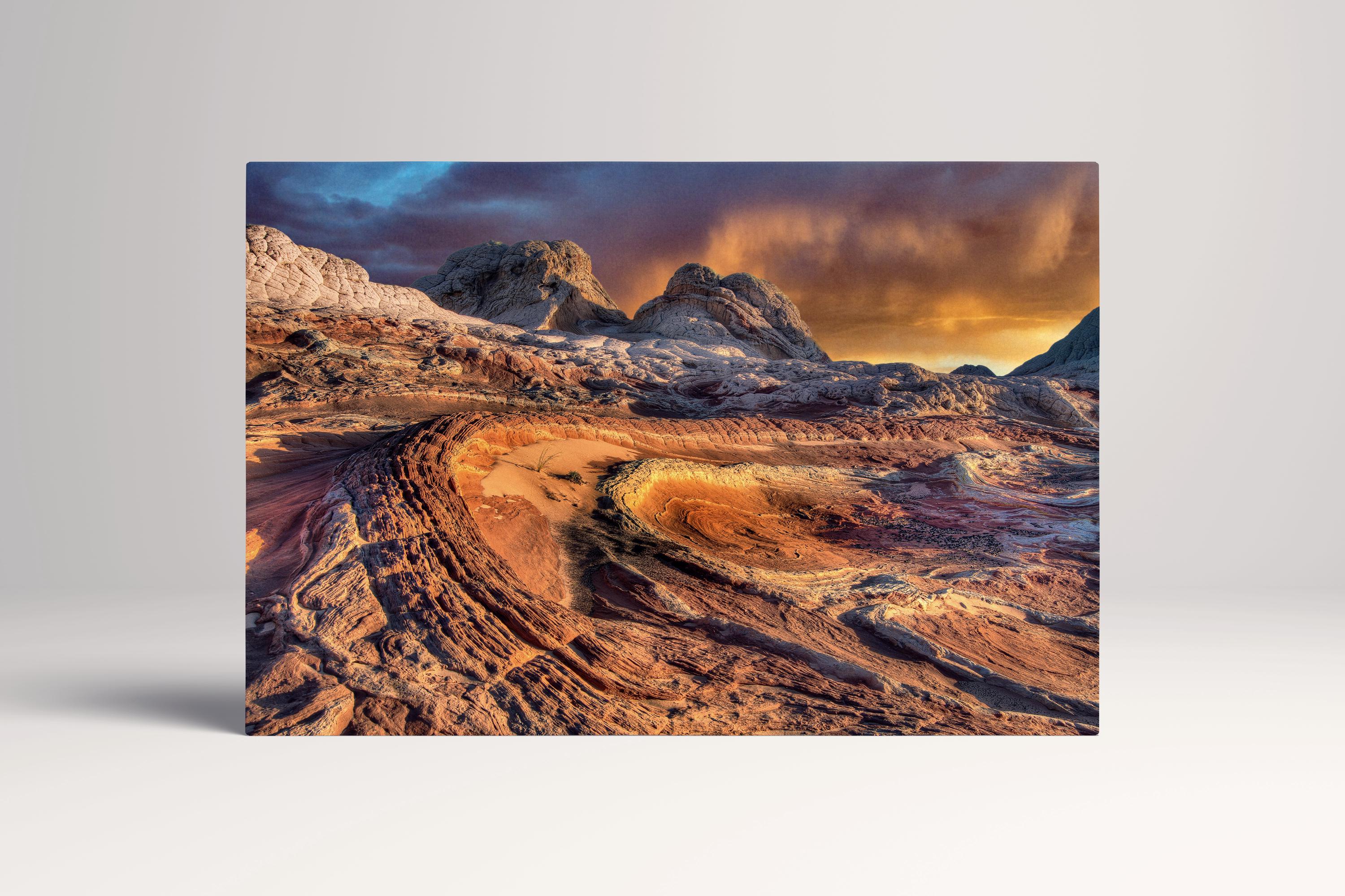 The leather print is stretched onto the stretcher frame and clipped onto the rear side of it like traditional canvas. This means that the image content is pulled over the edges so that the panel comes ready to hang