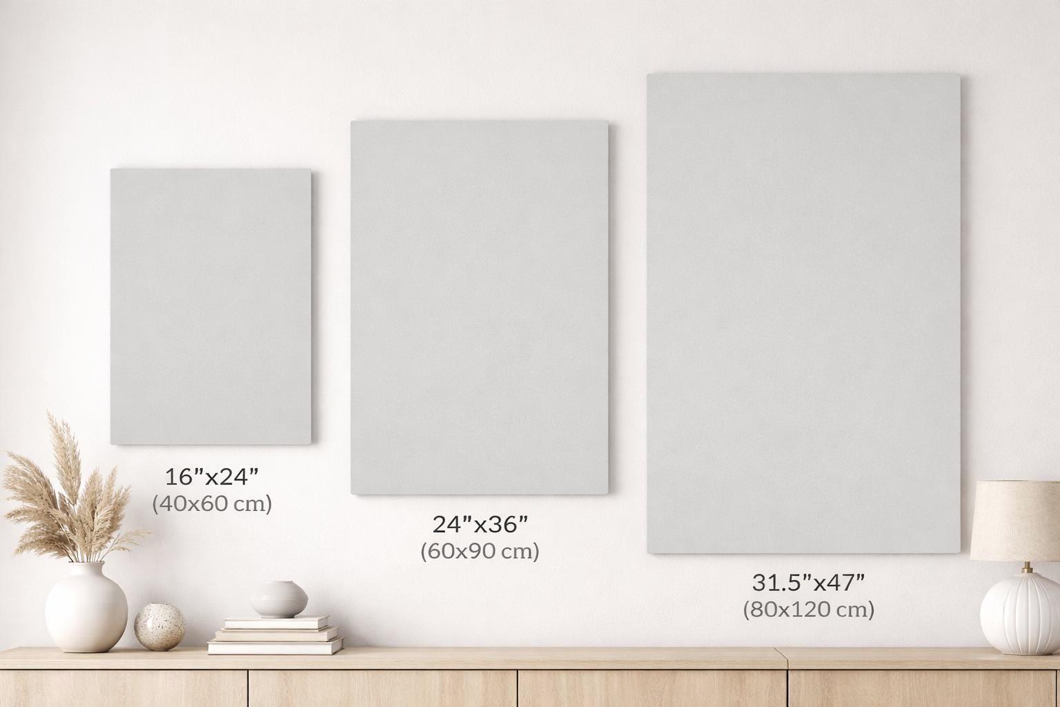 To have a proper idea of the print sizes please use a meter and check on a wall before placing the order.