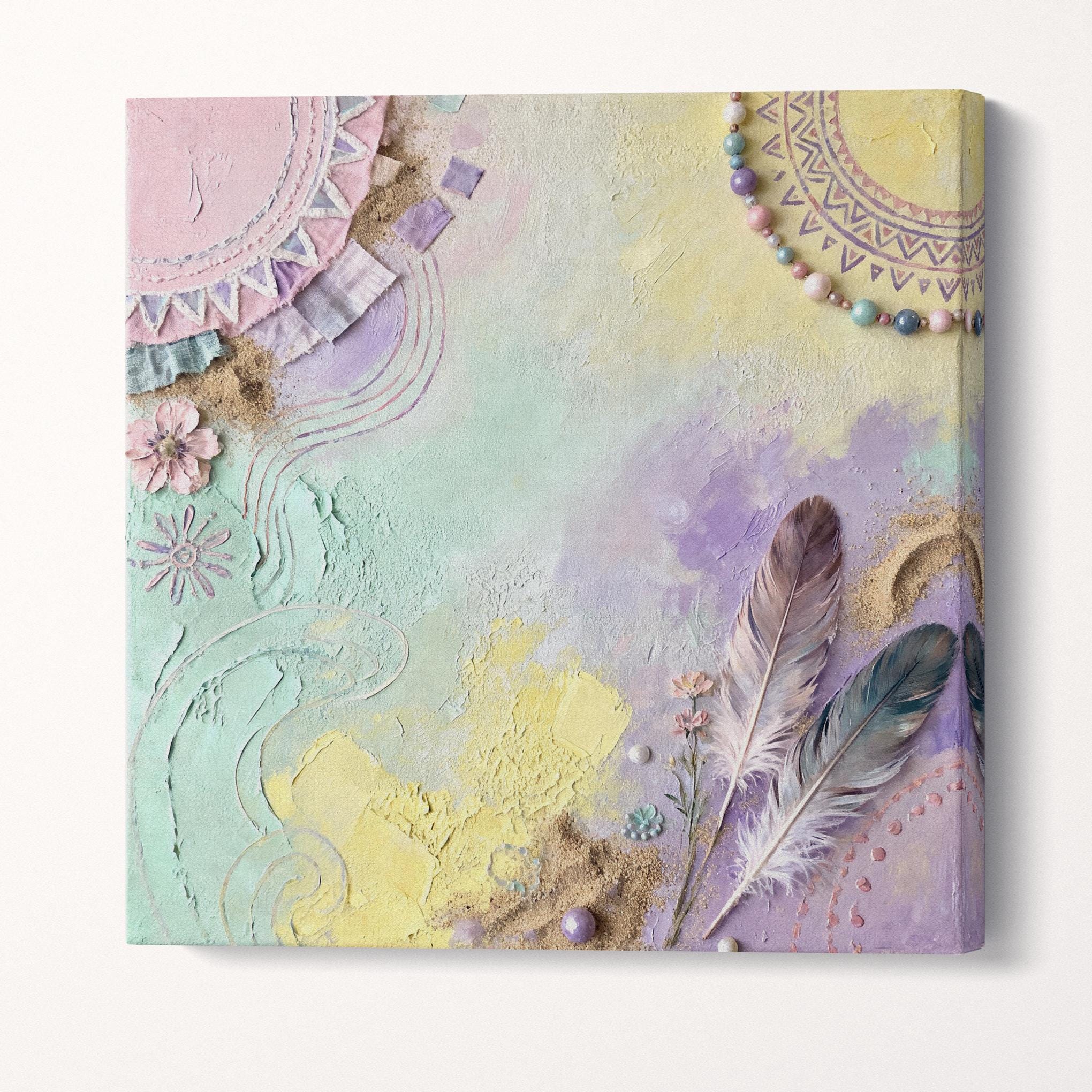 Pastel Boho Harmony Vegan Leather Canvas Set Wall Art