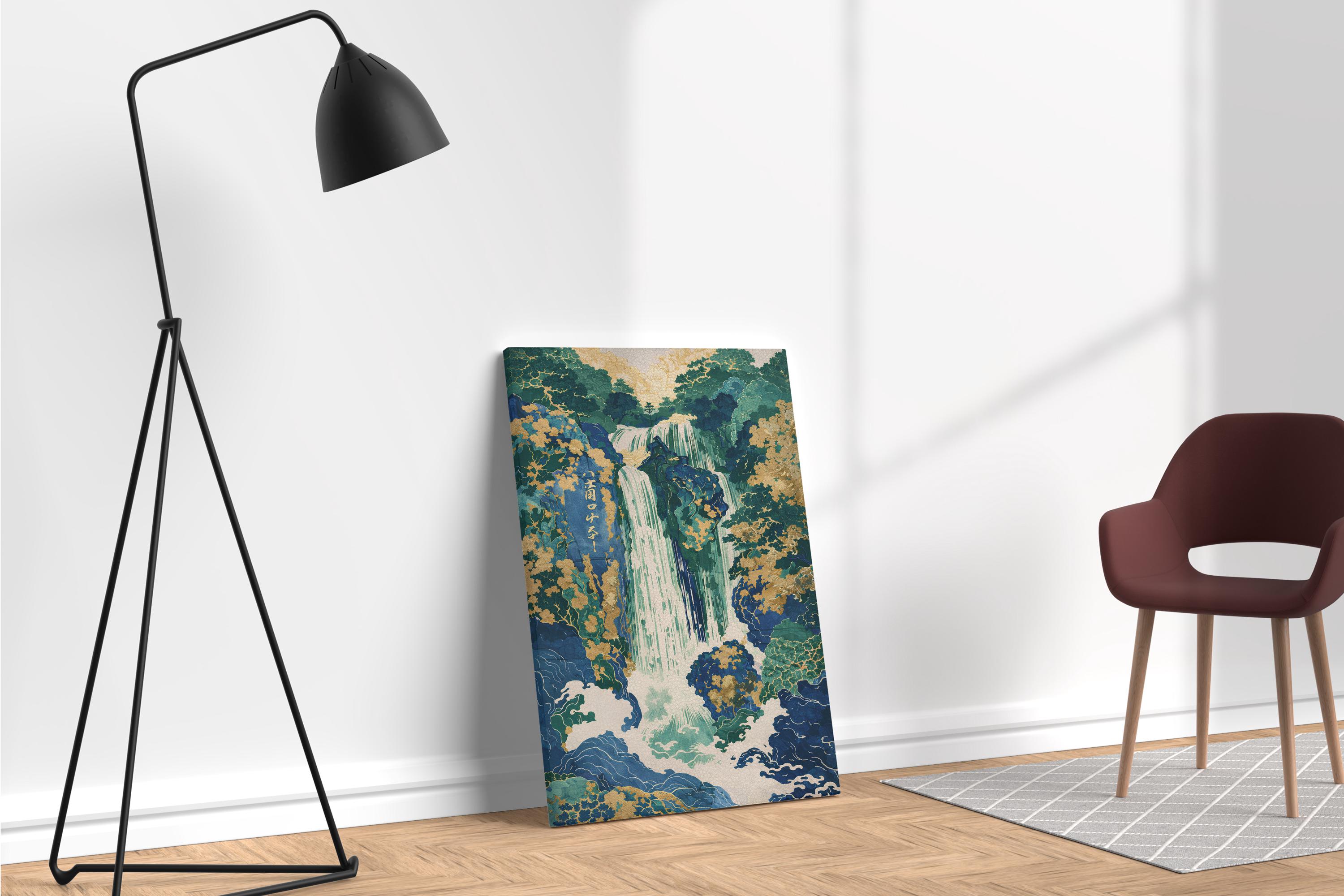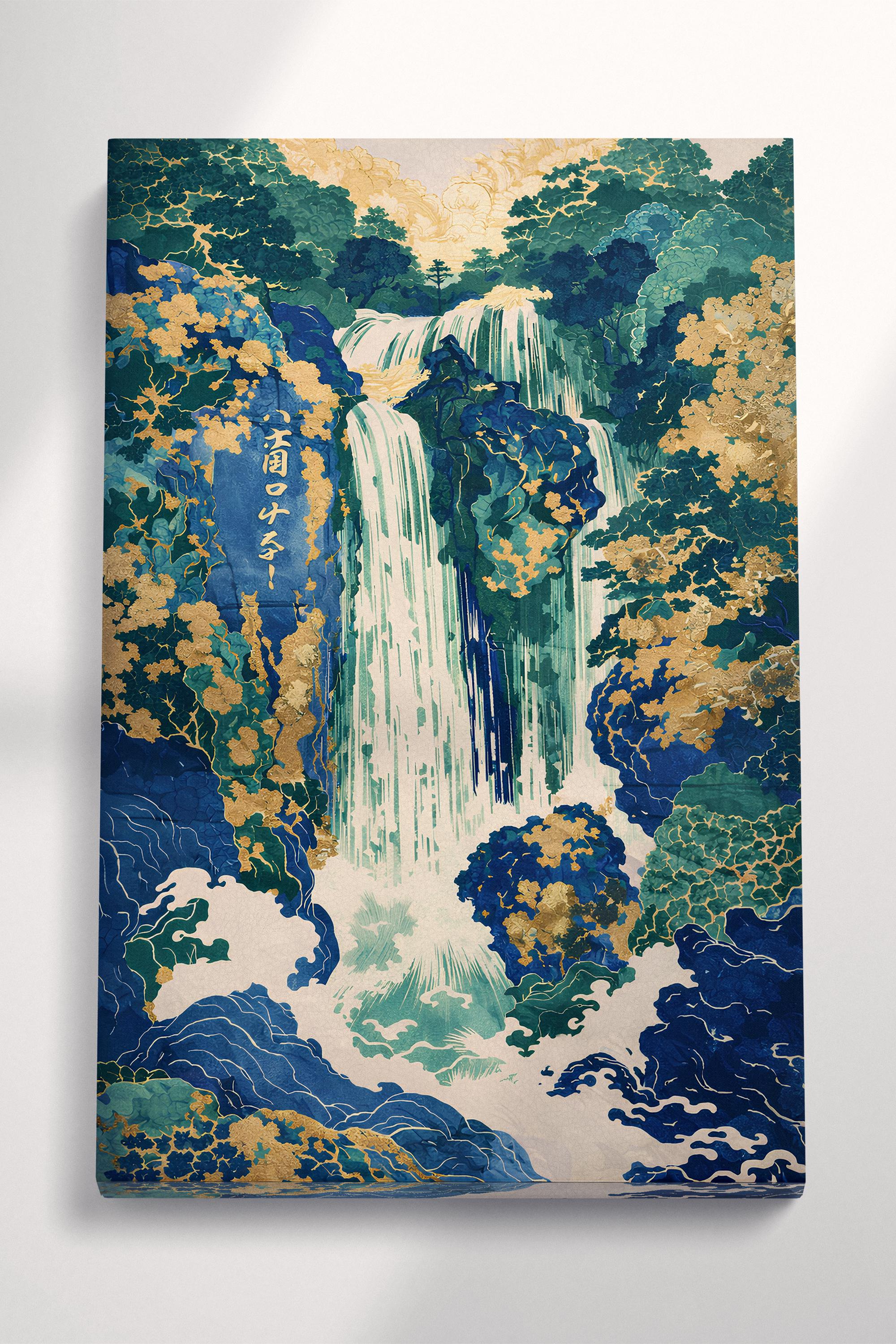 Bring a sense of calm and refined elegance into your space with this Japanese waterfall wall art, inspired by traditional ukiyo-e aesthetics and enriched with delicate gold-tone details. Flowing water, lush foliage, and layered textures create a serene composition that evokes harmony, balance, and timeless Japanese artistry.