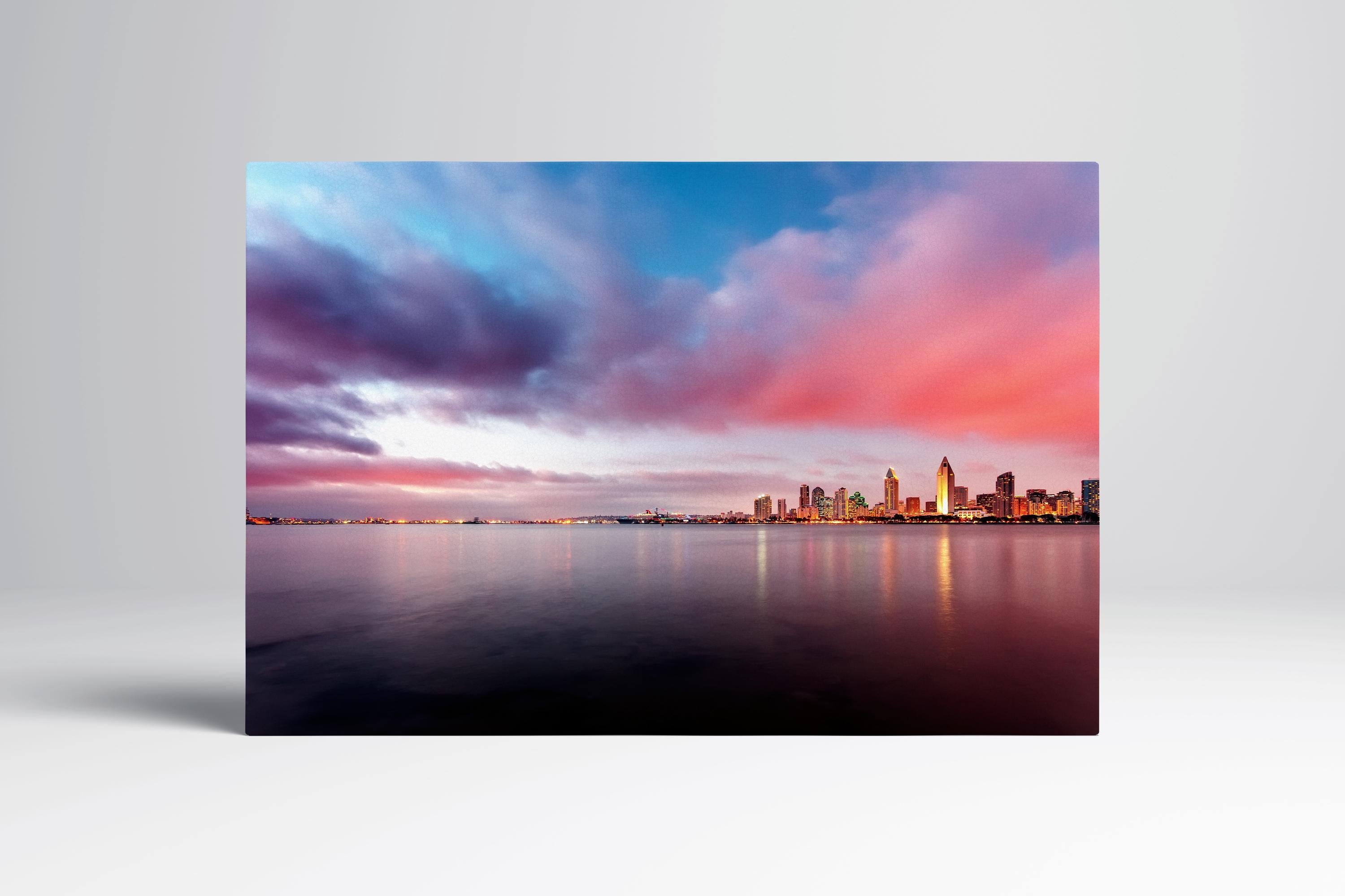 Celebrate vibrant coastal life with this San Diego wall art print on PETA approved vegan eco leather. Golden light, ocean breeze tones, and iconic skyline views create an inviting focal point for living rooms, bedrooms, offices, or beach-inspired interiors. Available as gallery wrap wall art in single, triptych (3 panels), or five panel layouts to suit different spaces and design styles.
