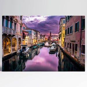 Burano island, Venezia canal and colorful houses canvas eco leather print, Made in Italy!