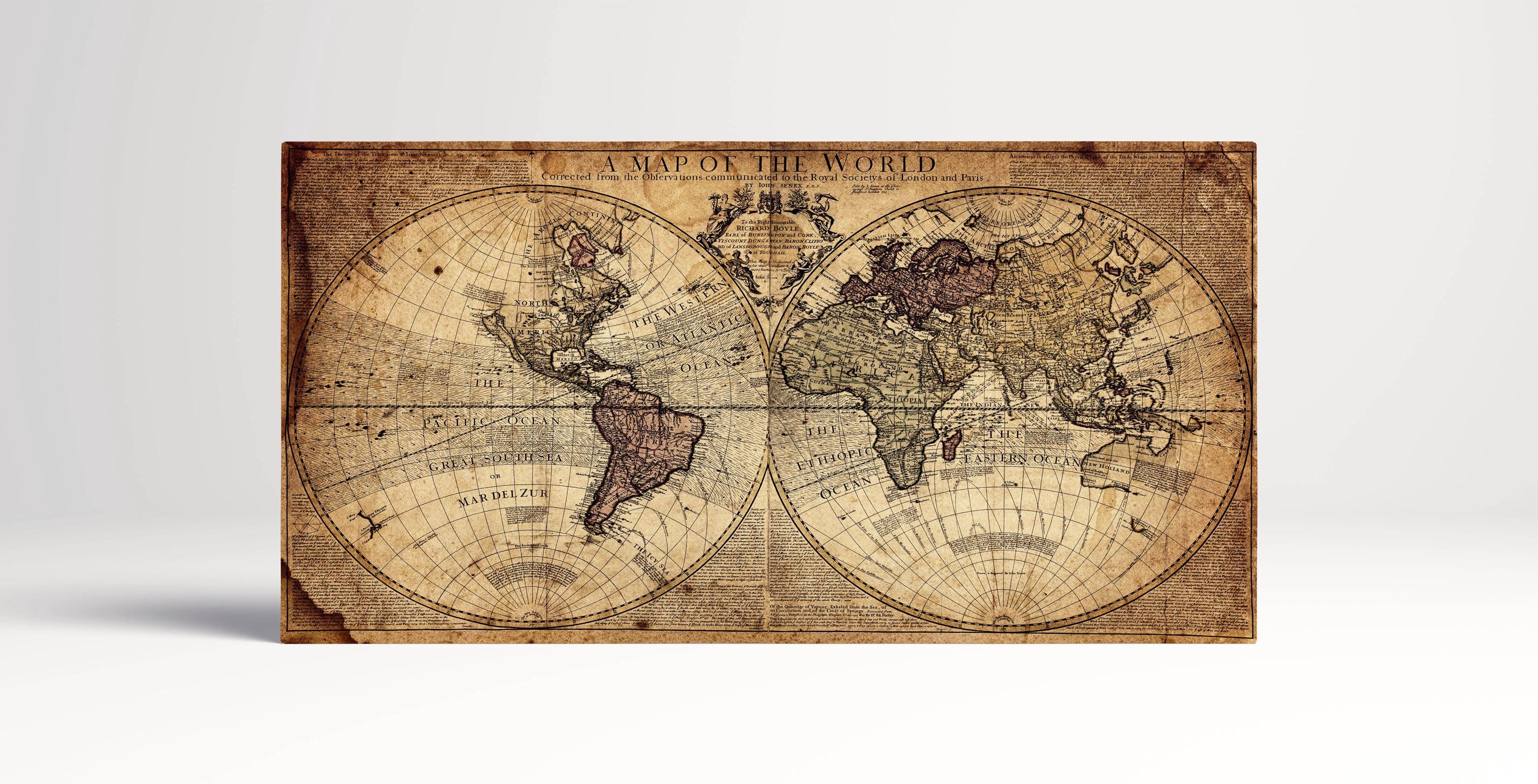 Large Wall Art World Map Leather Print/Vintage World Map Print.
