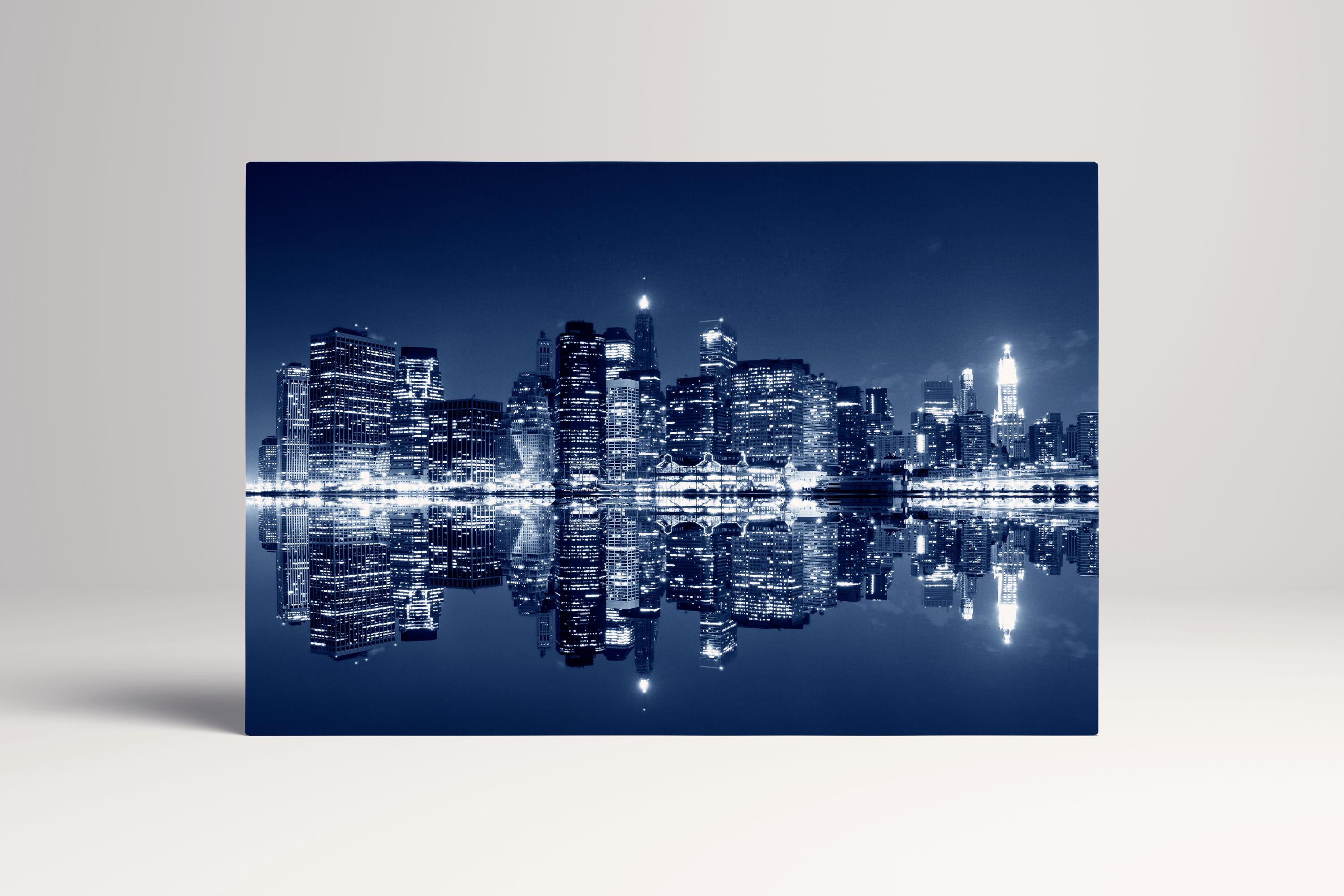 Bring the city that never sleeps into your home. This breathtaking view of the Manhattan skyline at night is printed on PETA Approved Eco Leather Canvas, where the shimmering city lights and dark skyscraper silhouettes are elevated by a luxury, textured finish. A sophisticated statement piece for New York lovers and modern metropolitan interiors.