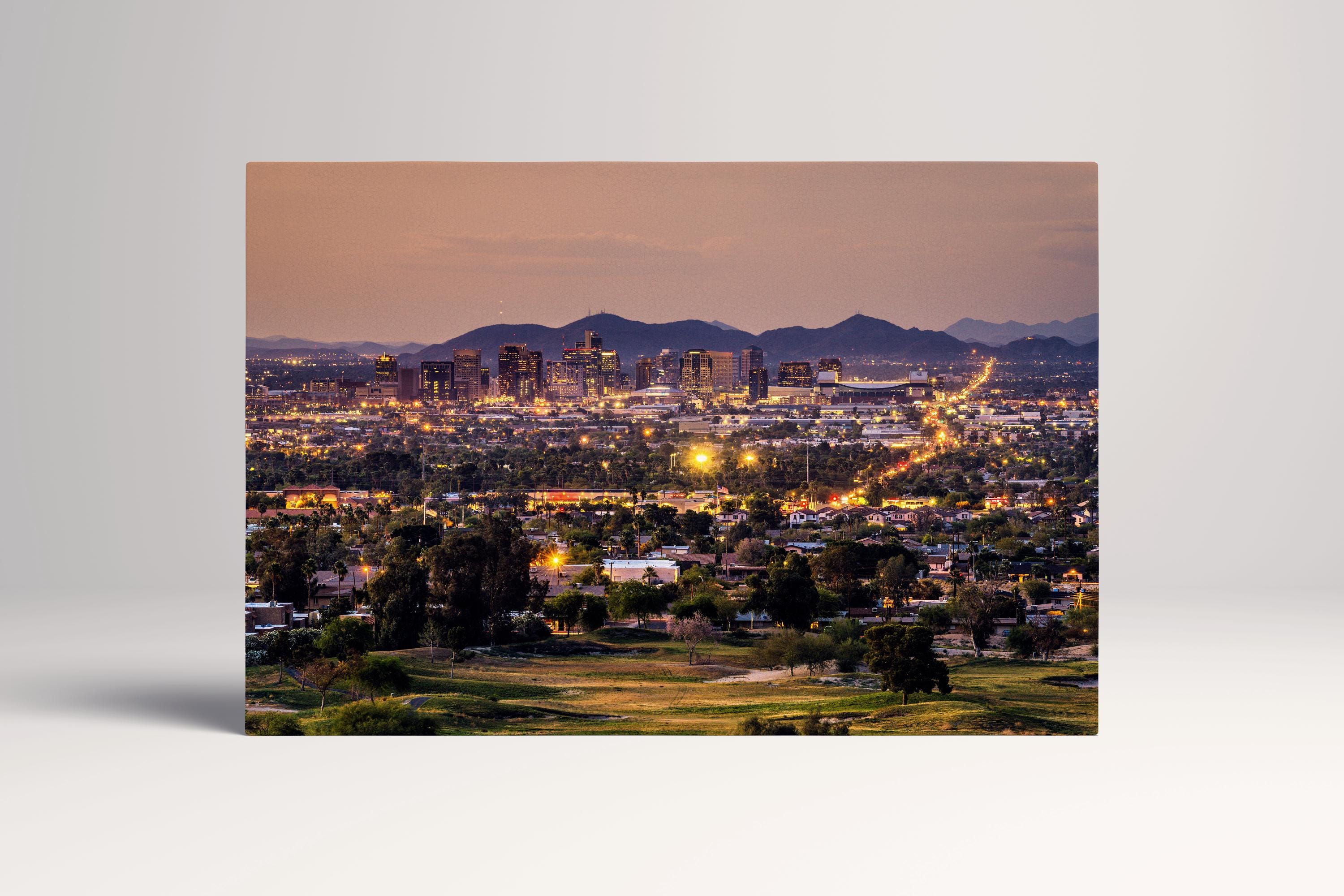 Phoenix Arizona Skyline Sunset PETA Approved Eco Leather Canvas Triptych or Single Art