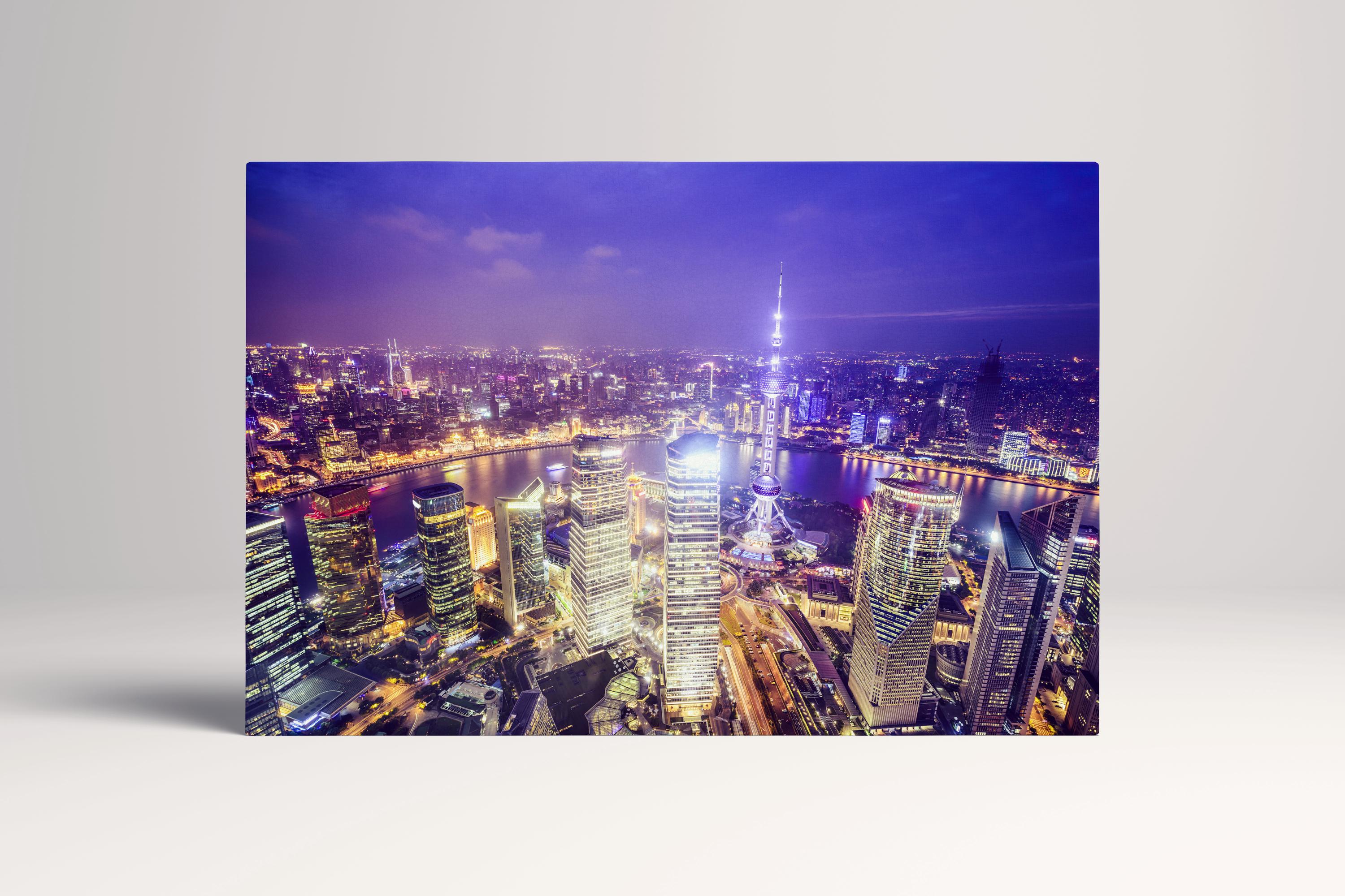 Shanghai Skyline Night China PETA Approved Eco Leather Canvas Triptych or Single Art