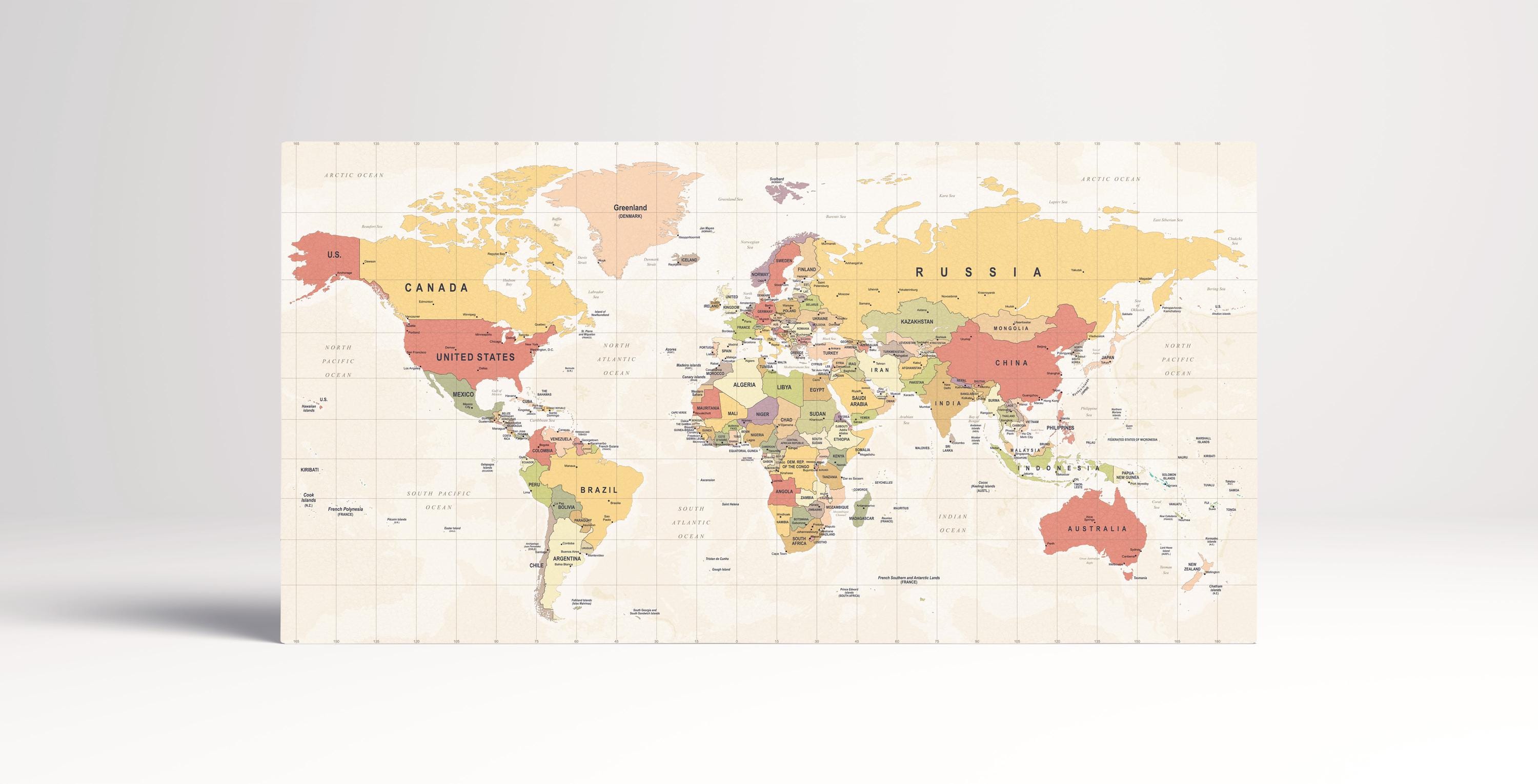 Track your global adventures with style. This interactive Push Pin World Map is printed on PETA Approved Eco Leather Canvas, providing a luxury, durable surface that is perfect for marking your past travels and future dreams. The sophisticated matte finish and tactile texture turn a travel tracker into a high-end gallery piece, making it the ultimate gift for the explorer in your life.