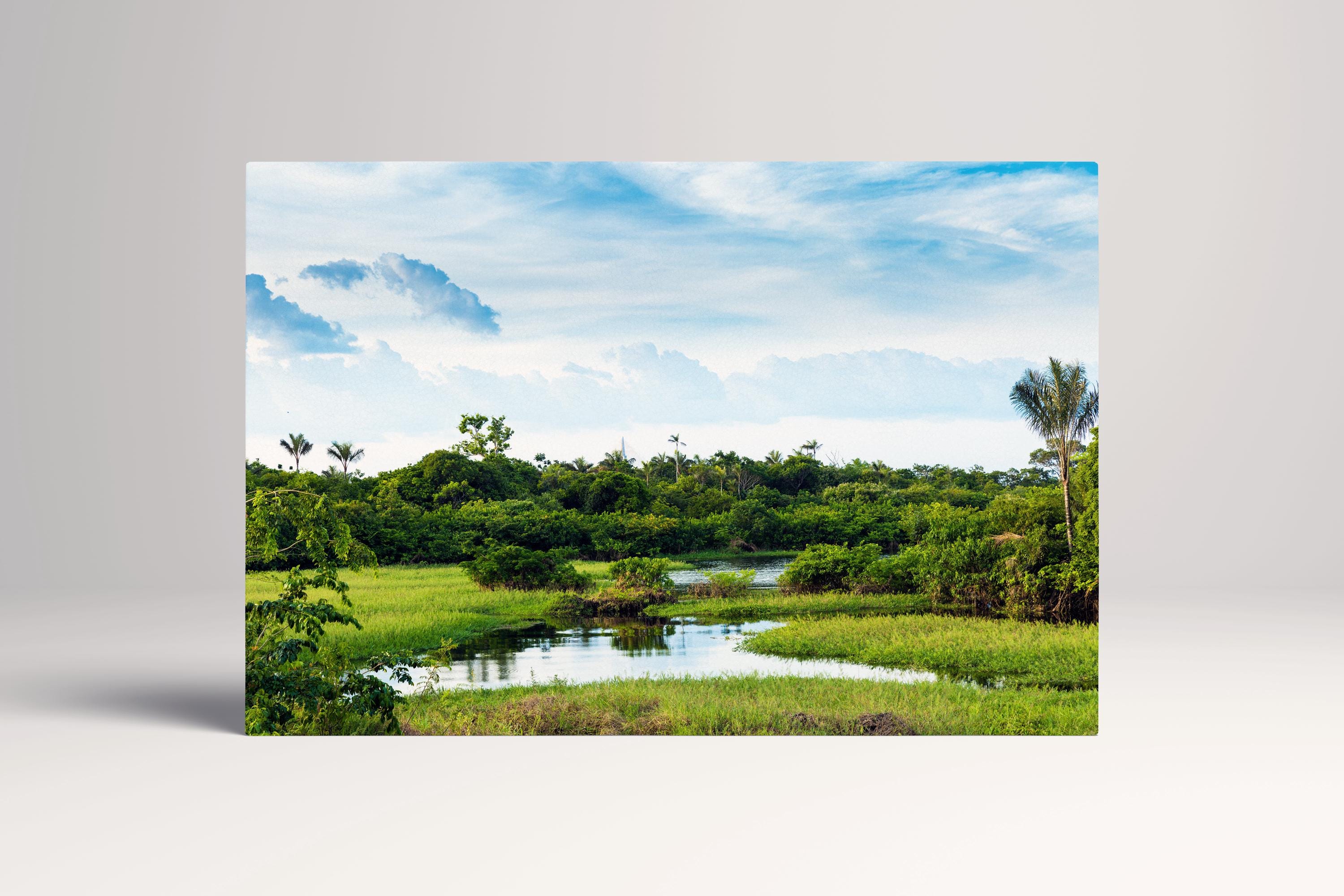 The leather print is stretched onto the stretcher frame and clipped onto the rear side of it like traditional canvas. This means that the image content is pulled over the edges so that the panel comes ready to hang