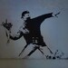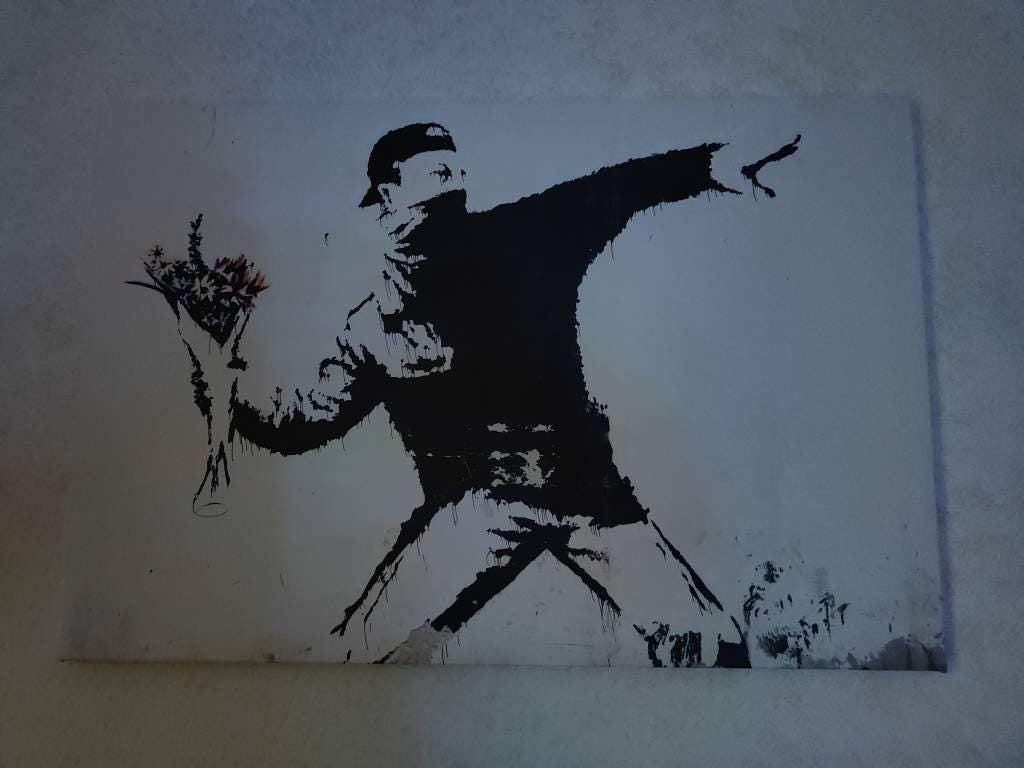 Rage, Flower Thrower Banksy Wall Art Leather Print Floating Frame Reproduction, Made in Italy!